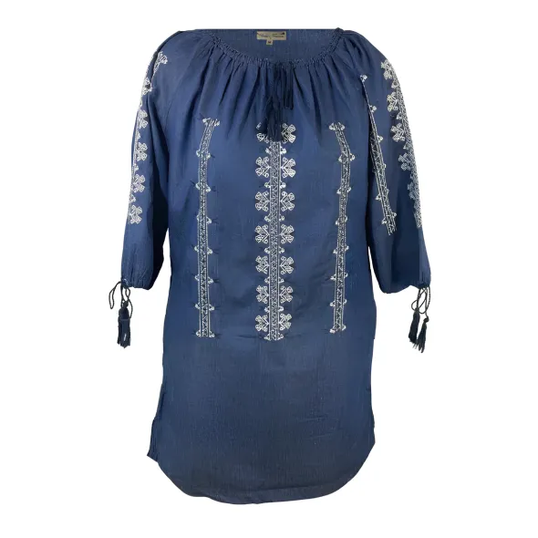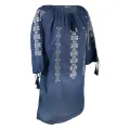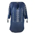 Bluza tip ie albastra din bumbac cu maneca 3/4 cu nasture si motiv geometric alb.