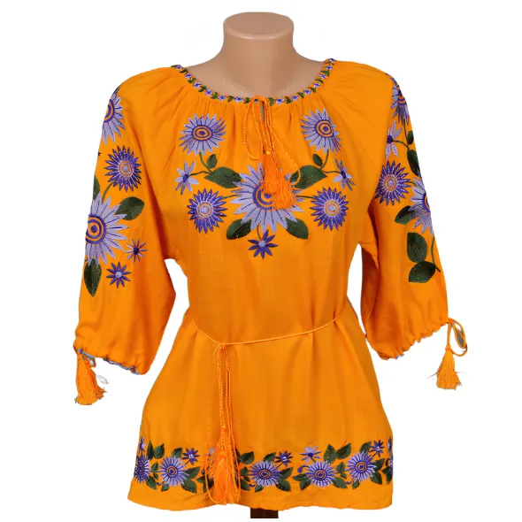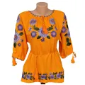 Bluza tip ie galbena din viscoza cu maneca 3/4 si motiv rosu