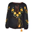 Bluza tip ie neagra din celofibra cu maneca 3/4 si motiv galben