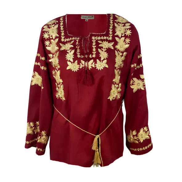 Bluza tip ie alba din bumbac cu maneca lunga si motiv floral multicolor.