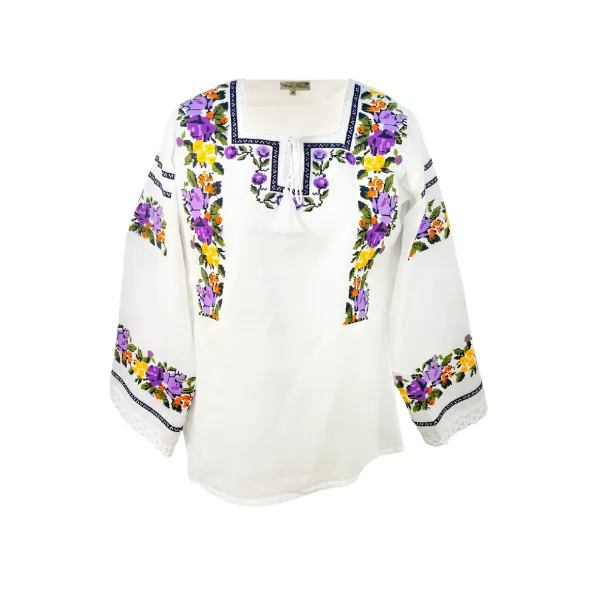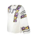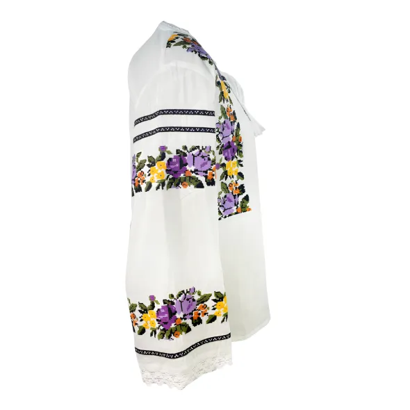 Bluza Tip Ie Alba cu Motiv Floral Rosu