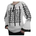 Bluza Tip Ie Alba cu Motiv Floral Negru