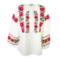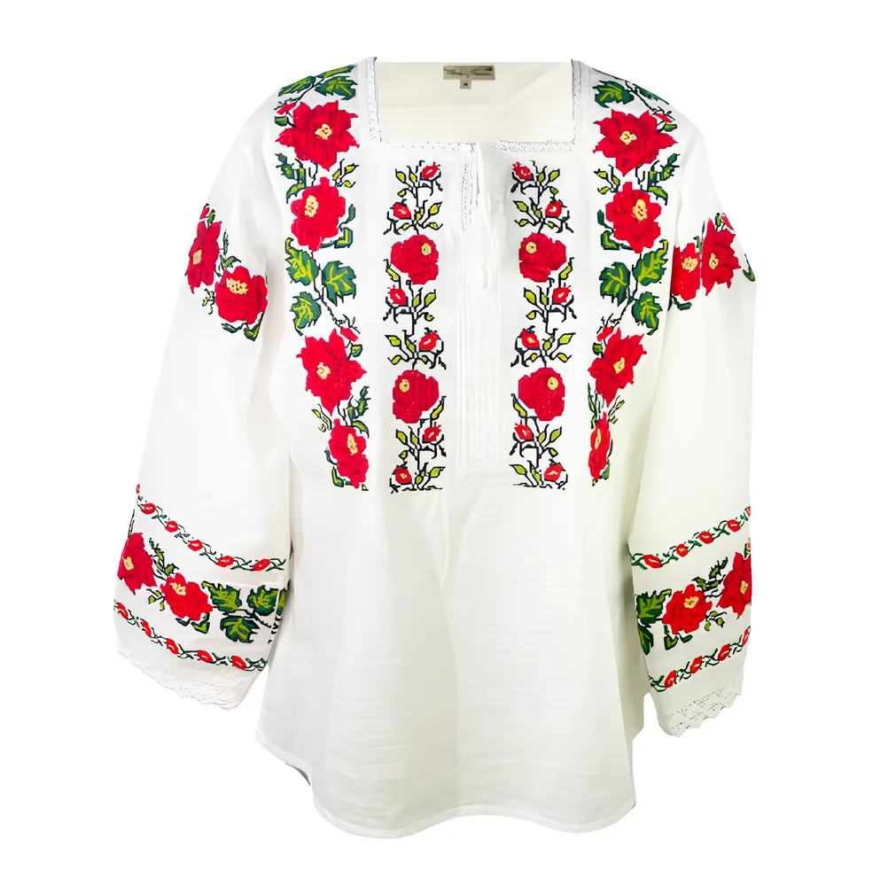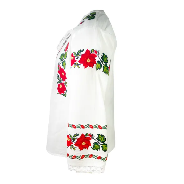 Bluza Tip Ie Alba cu Motiv Floral Rosu - BMG29