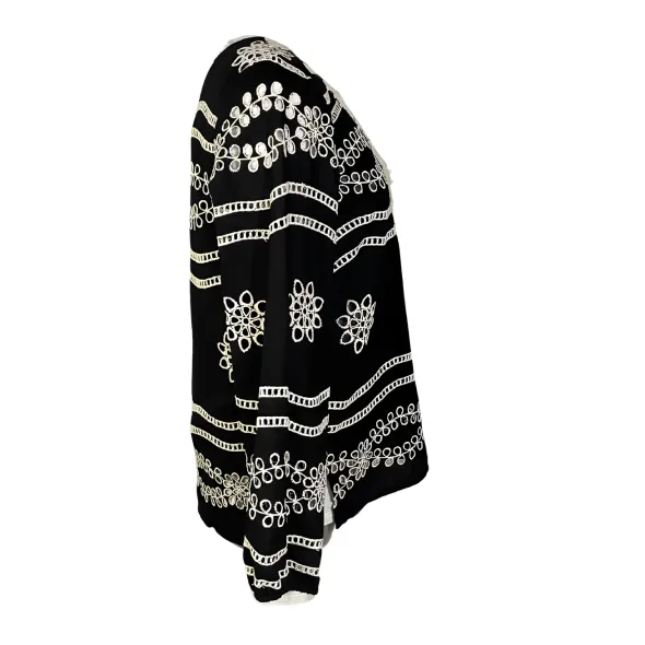 Bluza Tip Ie Neagra cu Motiv Floral Crem