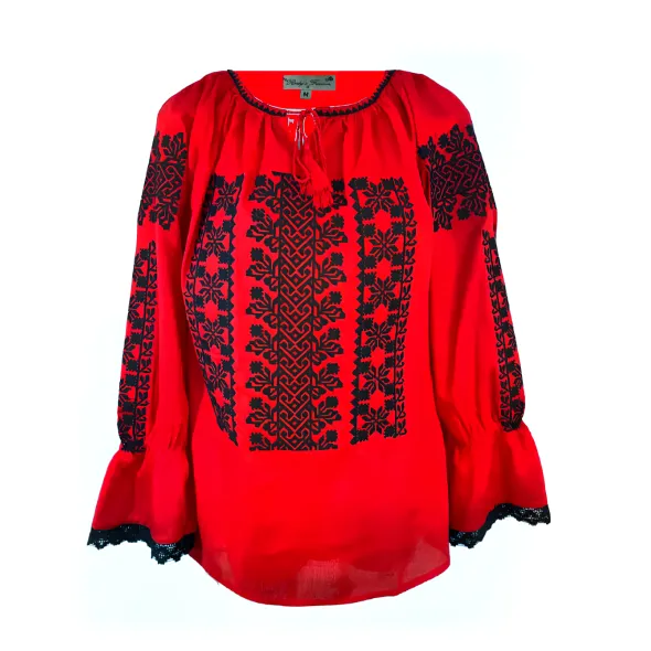 Bluza Tip Ie Rosie cu Motiv Geometric Negru