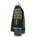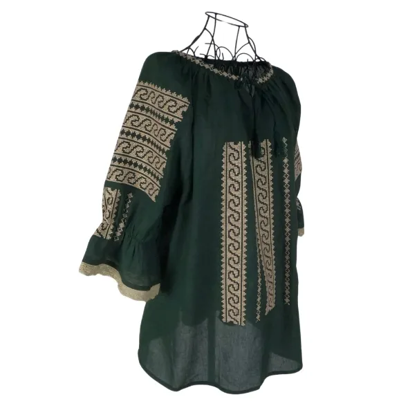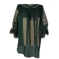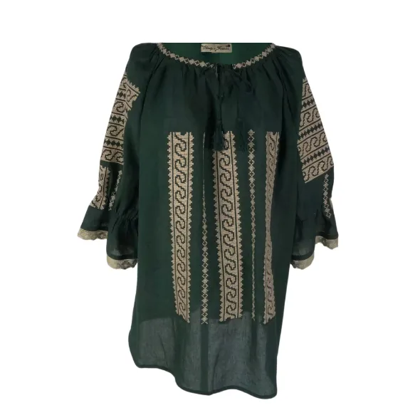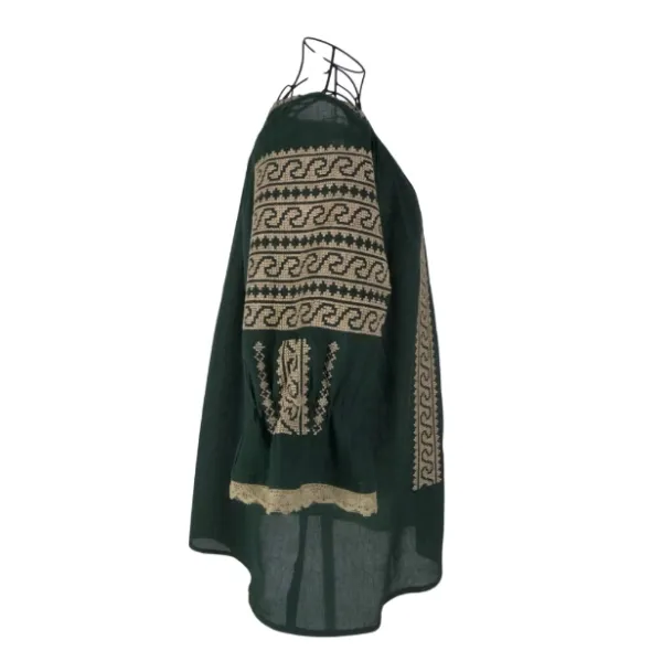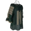 Bluza tip ie verde din bumbac cu maneca lunga si motiv floral crem