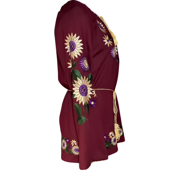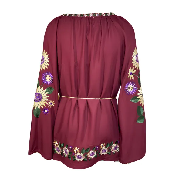 Bluza tip ie visinie din viscoza cu maneca lunga si motiv floral multicolor