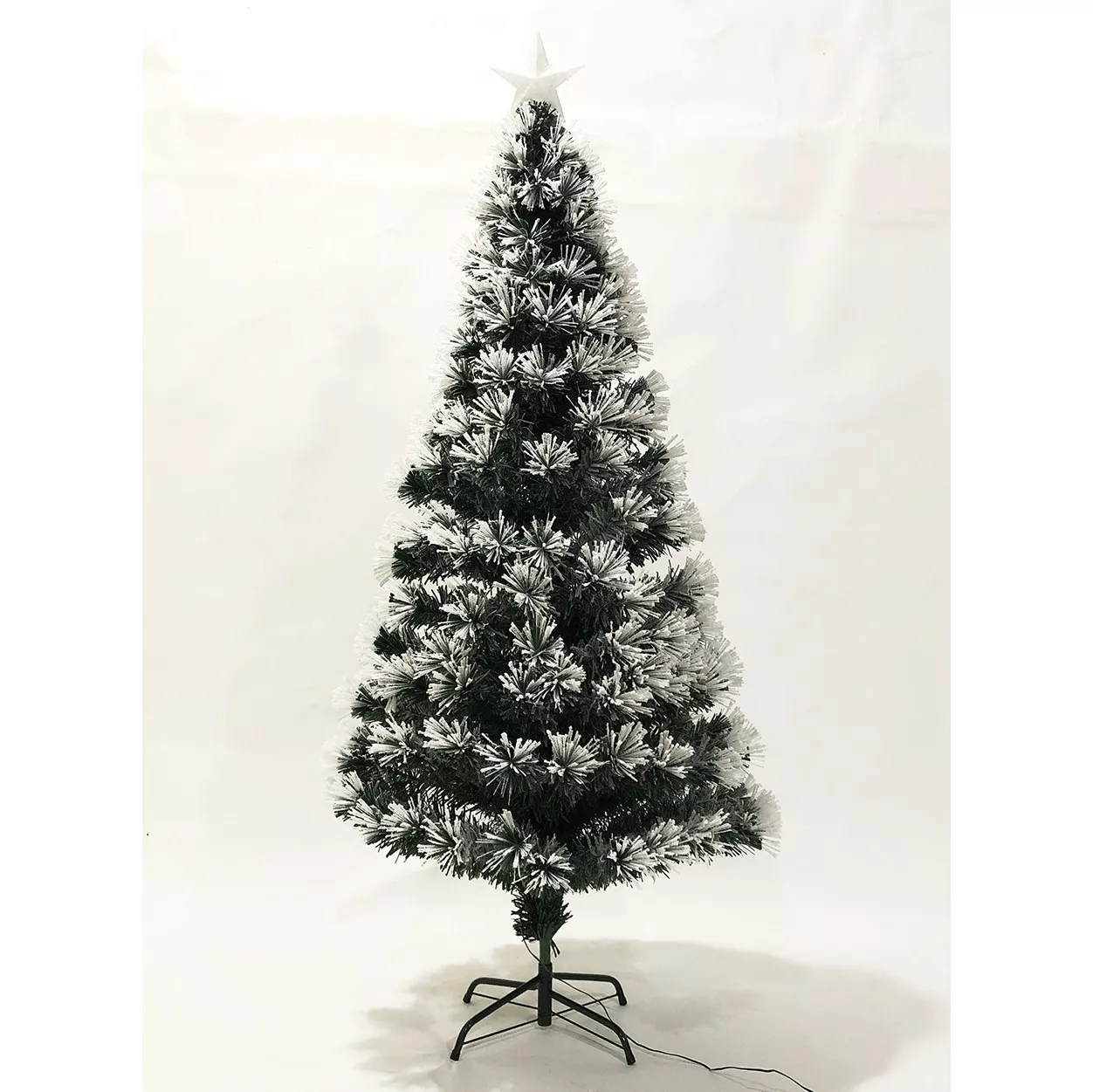 Brad artificial cu fibra optica prevazut cu 225 de LED-uri multicolore (220 LED-uri bradul + 5 LED-uri steaua din varf) cu efect flash si are o inaltime totala de 180 cm. Acest pom de Craciun este verde si gata pentru pozitionare in orice incapere din locuinta, intrucat are lumini incluse si o steluta montata in varf.