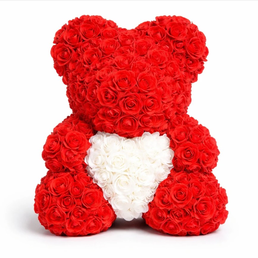 Un urs decorativ premium, realizat integral din trandafiri artificiali, creat pentru a transmite un mesaj puternic de iubire și afecțiune. Inserția centrală în formă de inimă albă adaugă un contrast elegant și simbolizează puritatea sentimentelor. Cu un design spectaculos și un impact vizual deosebit, acest urs este alegerea ideală pentru cadouri romantice, aniversări, evenimente speciale sau ca piesă statement în vitrine și spații comerciale
