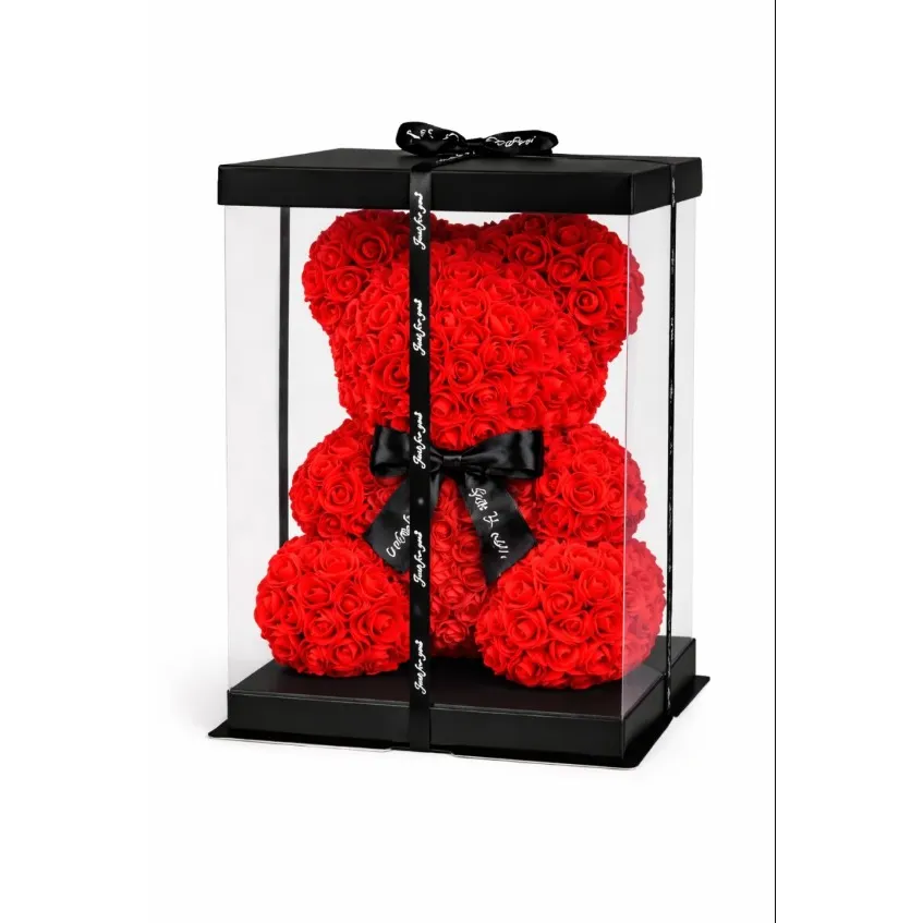 Un urs decorativ premium, realizat integral din trandafiri artificiali, creat pentru a transmite un mesaj puternic de iubire și afecțiune. Inserția centrală în formă de inimă albă adaugă un contrast elegant și simbolizează puritatea sentimentelor. Cu un design spectaculos și un impact vizual deosebit, acest urs este alegerea ideală pentru cadouri romantice, aniversări, evenimente speciale sau ca piesă statement în vitrine și spații comerciale