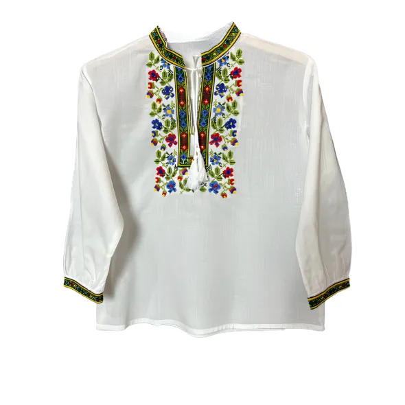Camasa Tip Ie Traditionala de Baieti Alba cu Motiv Floral Multicolor
