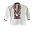 Camasa Tip Ie Traditionala de Baieti Alba cu Motiv Floral Multicolor - ITB10