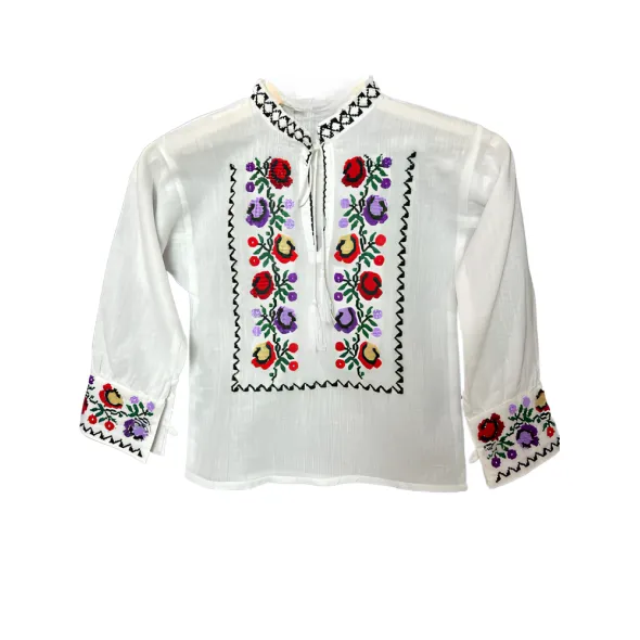 Camasa Tip Ie Traditionala de Baieti Alba cu Motiv Floral Multicolor