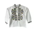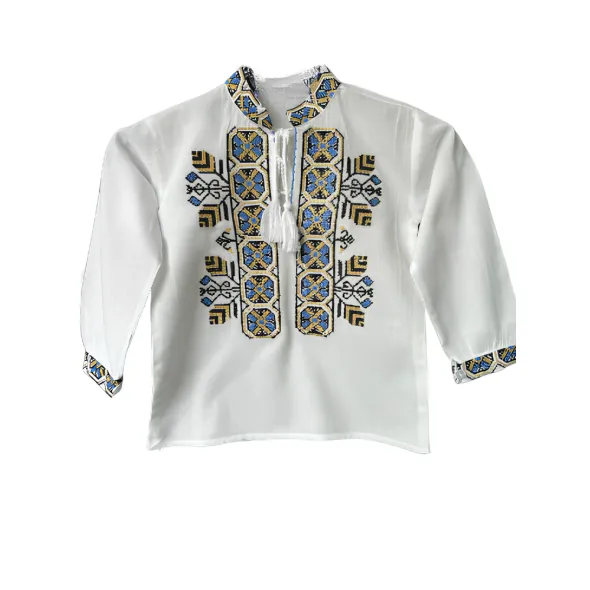 Camasa Tip Ie Traditionala de Baieti Alba cu Motiv Geometric Multicolor