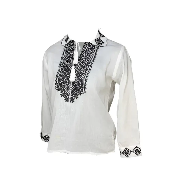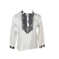 Camasa traditionala de baieti alba cu motiv geometric negru