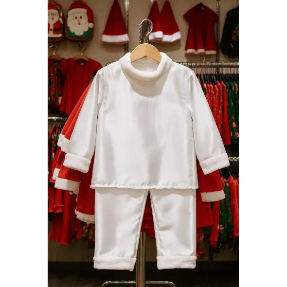 Acest costum superb pentru copii este ideal pentru serbările de iarnă, ședințe foto sau petreceri tematice. Realizat din satin alb lucios, setul include jachetă și pantaloni, ambele accesorizate cu blăniță moale și pufoasă, oferind o apariție elegantă și festivă. Materialul este confortabil, nu zgârie pielea și permite libertate de mișcare în timpul activităților.