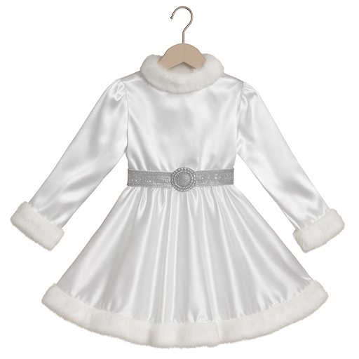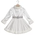 Costum Serbare Fete – Fulg de Nea din Satin Alb cu Blăniță