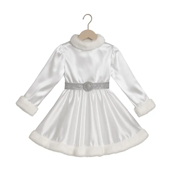 Transformă orice fetiță într-un adevărat Fulg de Nea cu acest costum delicat și elegant, perfect pentru serbările de iarnă, spectacole, colinde sau ședințe foto. Realizat din satin alb sidefat, costumul are accente din blăniță moale, care îi oferă un aspect magic, pur și rafinat. Materialul este plăcut la atingere, ușor și confortabil pentru momentele în care micuța dansează sau se joacă.