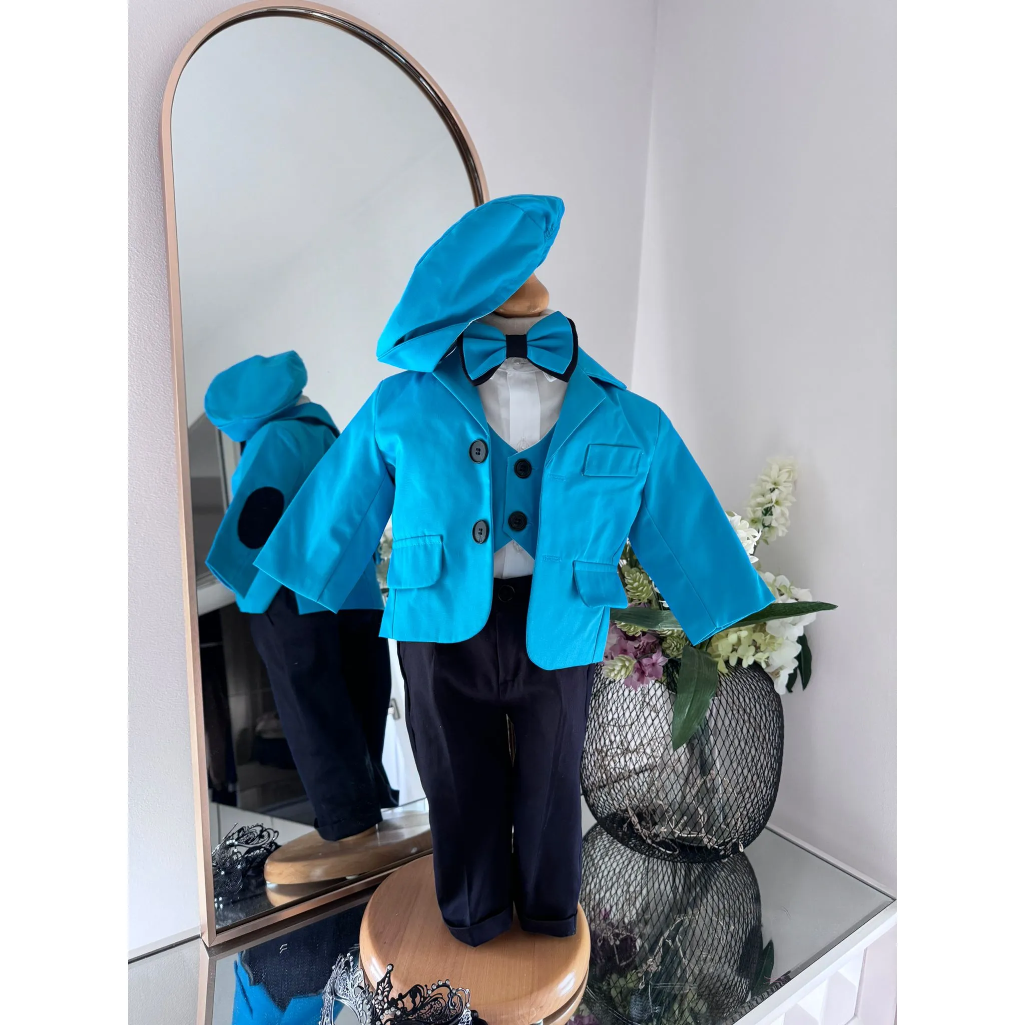 Setul contine : sacou, camasa, papion, pantalon, bereta