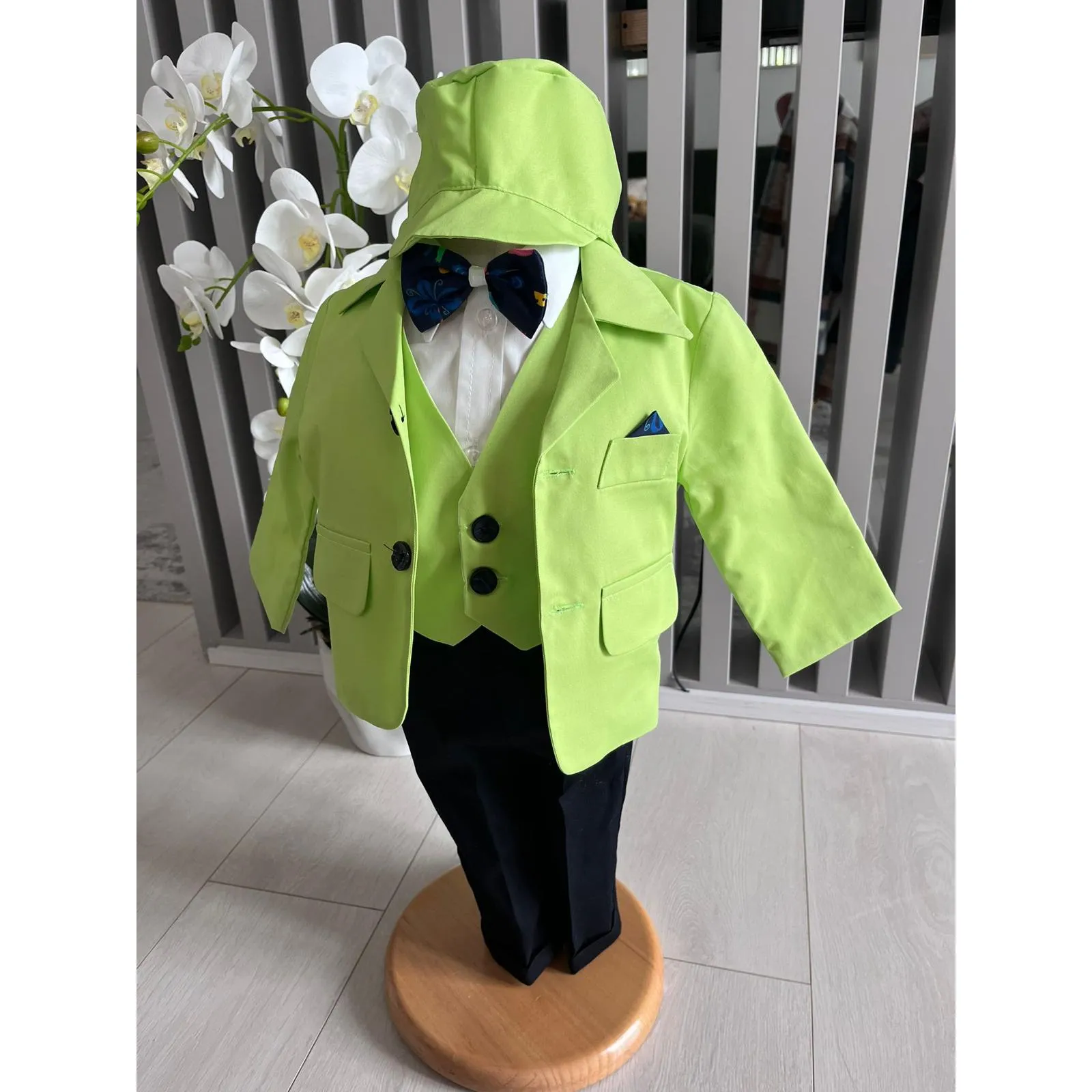 Setul contine : sacou, camasa, papion, pantalon, bereta