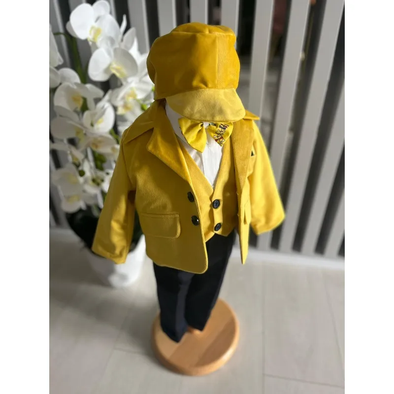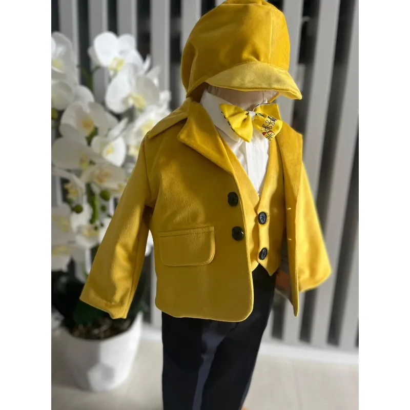 Costum botez 5 piese catifea, mustar - DPH360