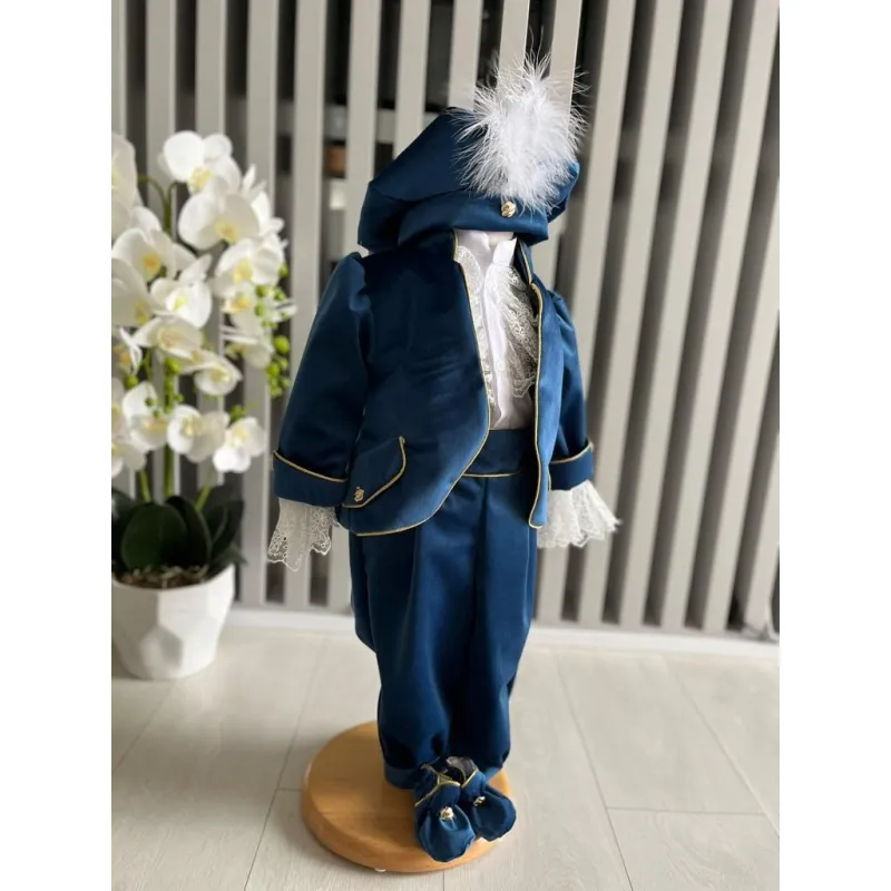 Costumul de botez pentru băieți este realizat cu grijă din materiale de calitate superioară, moi și delicate cu pielea sensibilă a bebelușului. Designul elegant îmbină rafinamentul clasic cu confortul absolut, fiind ideal pentru un eveniment special precum botezul