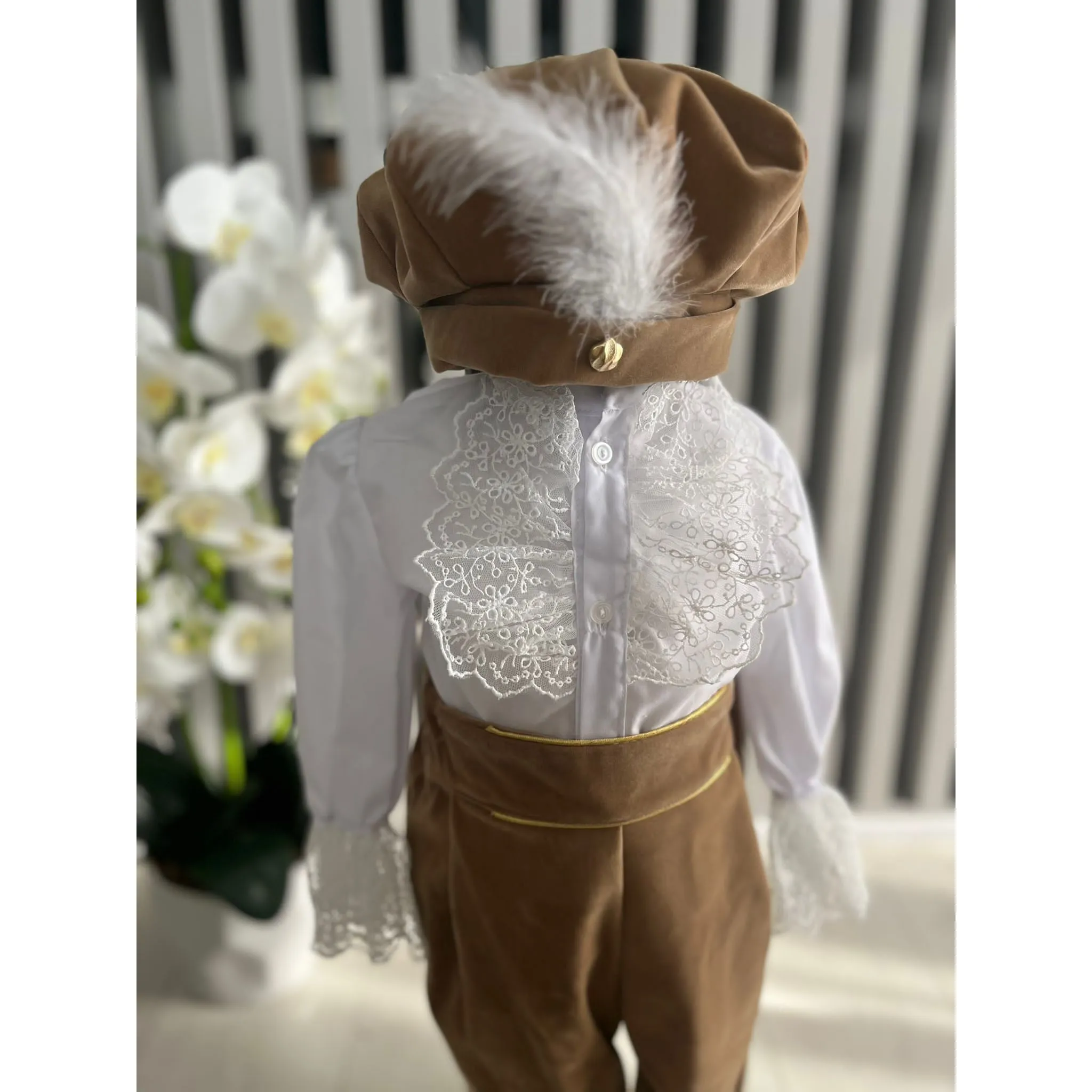 Setul contine : sacou, camasa, botosei, pantalon, bereta