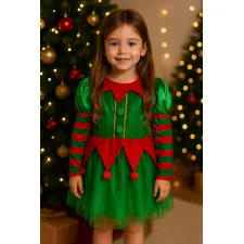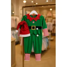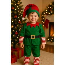 Un costum festiv, vesel și irezistibil, care aduce magia Crăciunului în fiecare apariție a micuțului Moș!