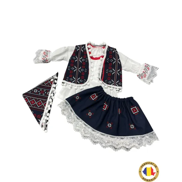 Un port popular elegant și rafinat, inspirat din tradiția românească, creat special pentru micuțele domnișoare. Ansamblul este compus din: