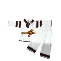 Acest costum tradițional pentru băieți aduce la viață frumusețea și autenticitatea portului popular românesc, fiind ideal pentru sărbători, evenimente culturale sau spectacole școlare. Costumul este confecționat din materiale confortabile, ușor de purtat și rezistente, potrivite pentru pielea delicată a copiilor.