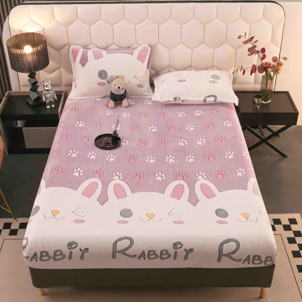 Husa de pat cocolino cu elastic + 2 fete de perne pentru pat dublu, confectionate din Microfibra plusata