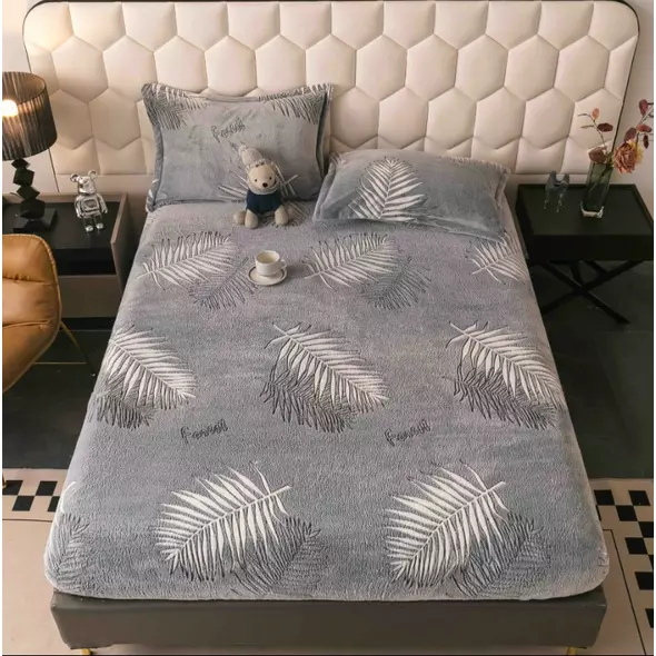 Husa de pat cocolino cu elastic + 2 fete de perne pentru pat dublu, confectionate din Microfibra plusata
