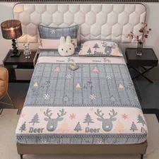Husa de pat cocolino cu elastic + 2 fete de perne pentru pat dublu, confectionate din Microfibra plusata
