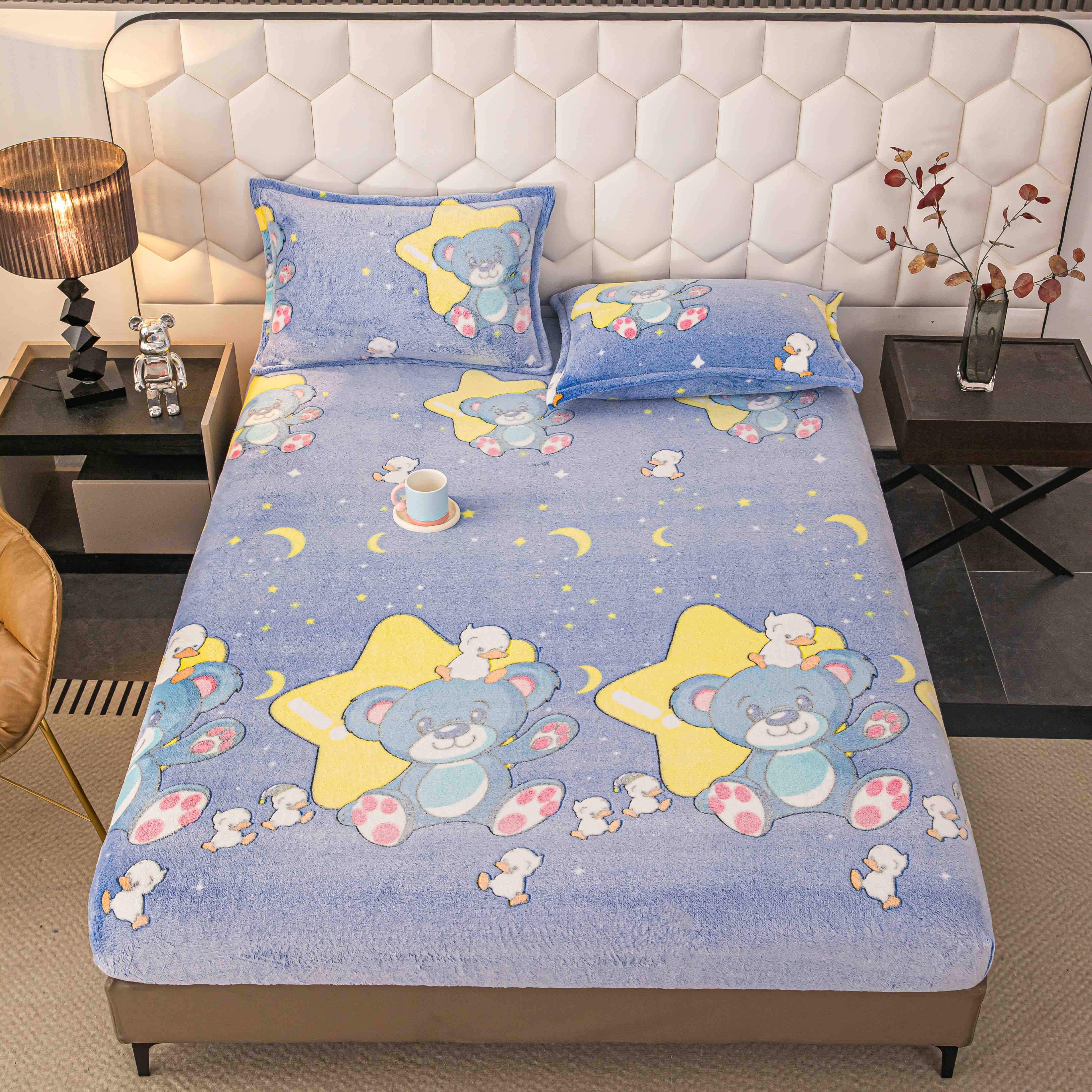 Husa de pat cocolino cu elastic + 2 fete de perne pentru pat dublu, confectionate din Microfibra plusata