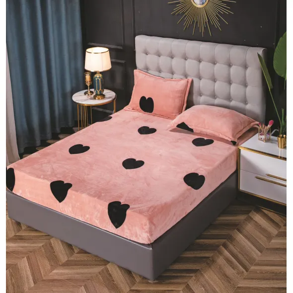 Husa de pat cocolino cu elastic + 2 fete de perne pentru pat dublu, confectionate din Microfibra plusata