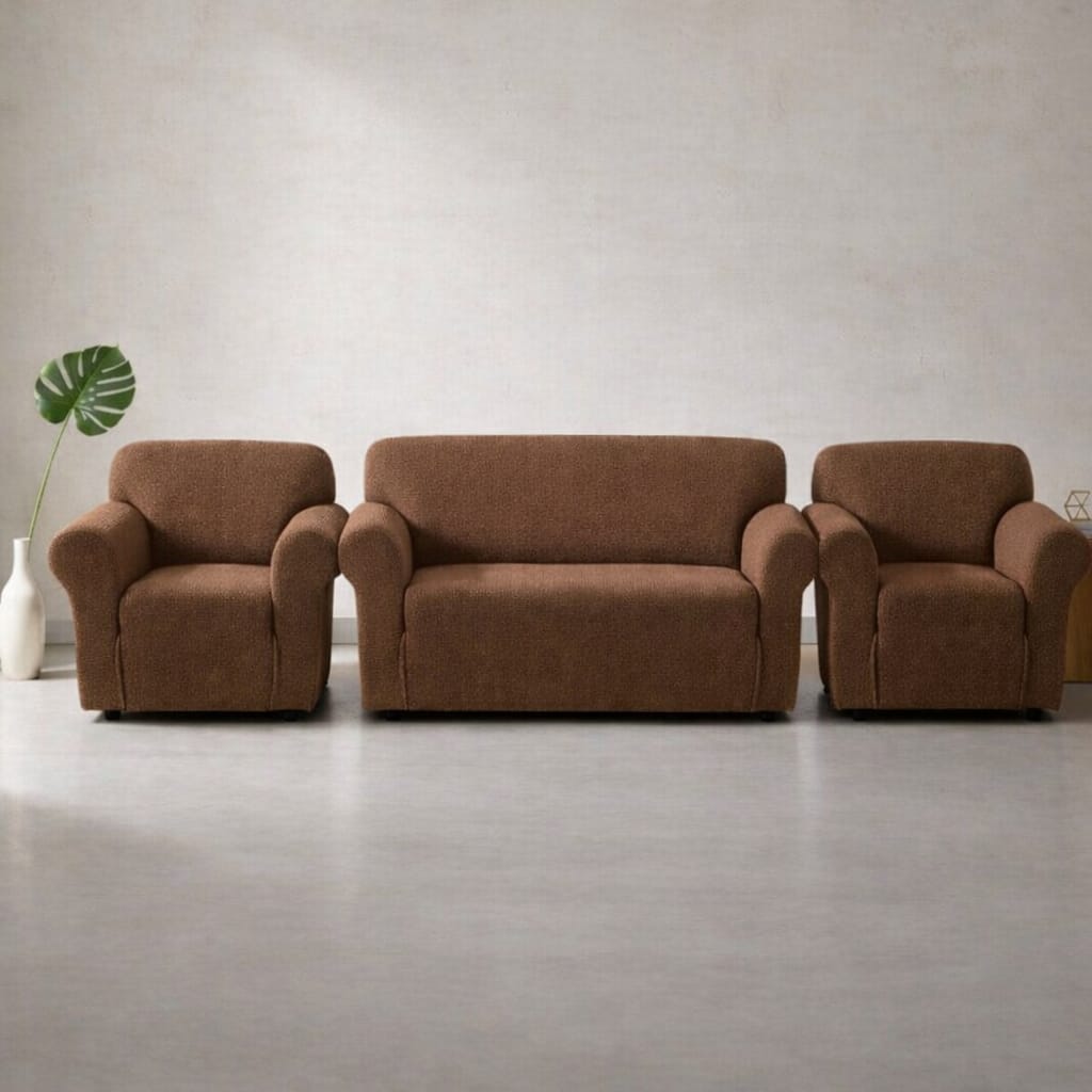 Huse Elastice, Canapea 3 Persoane + 2 Fotolii, din Lycra, Maro Deschis - AHM04