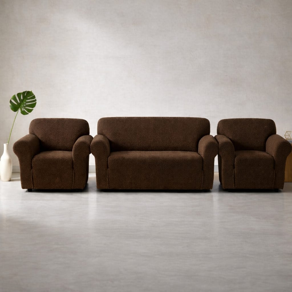 Huse Elastice, Canapea 3 Persoane + 2 Fotolii, din Lycra, Maro - AHM07