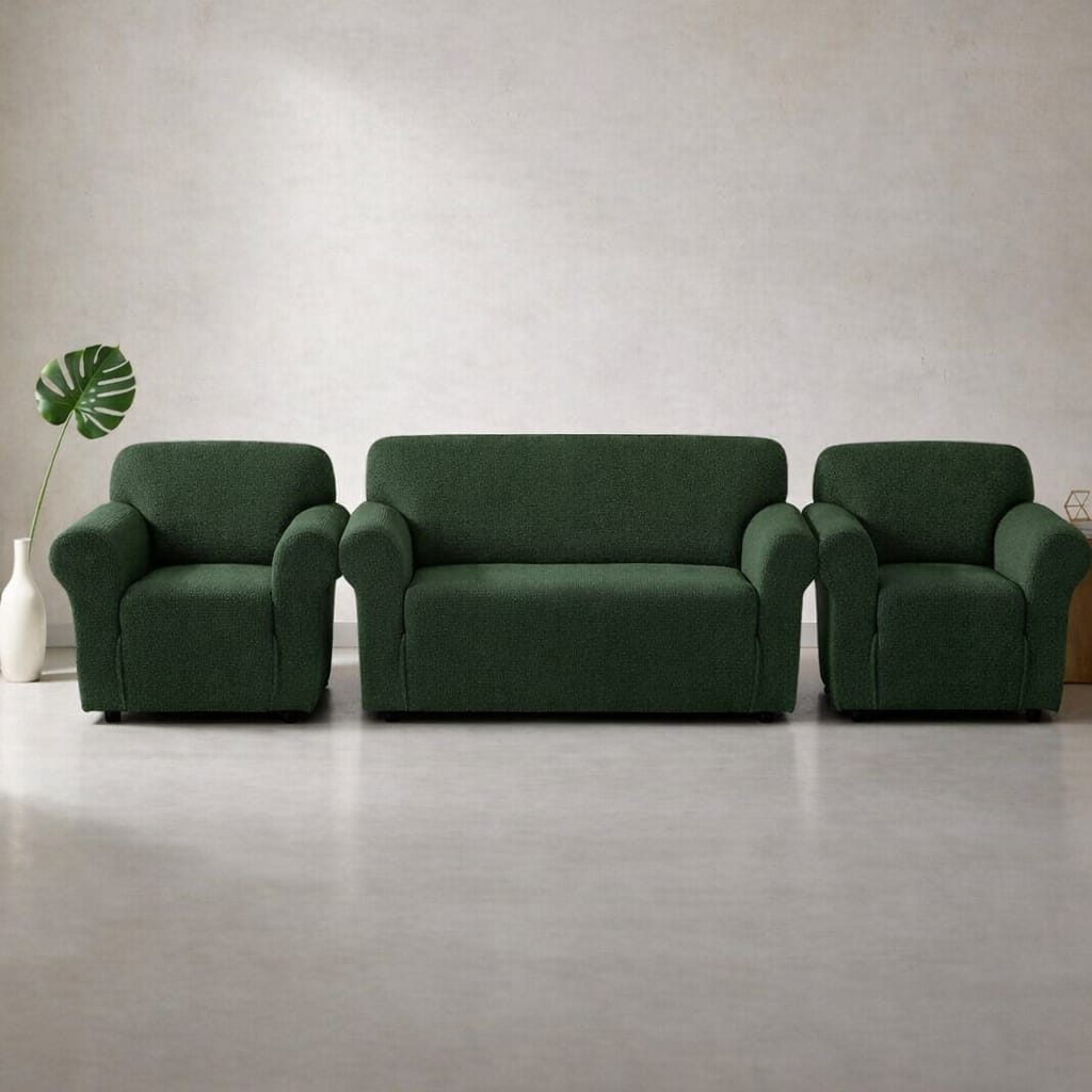 Huse Elastice, Canapea 3 Persoane + 2 Fotolii, din Lycra, Verde Inchis - AHM08