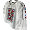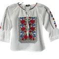 Ie traditionala alba pentru fetite cu motiv floral rosu - ITF04