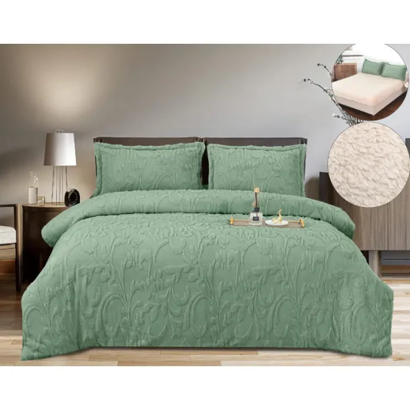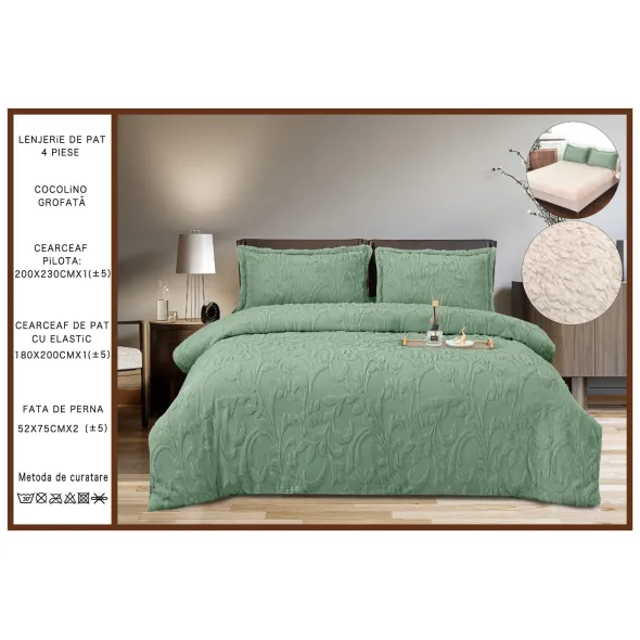 Lenjerie Cocolino 4 Piese, Blana Imitatie iepure, Pentru Pat Dublu, cu Elastic, Verde - PIT402