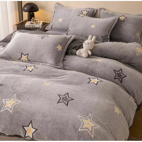 Lenjerie Cocolino 4 Piese Pentru Pat Dublu cu Elastic- JO287 Stelute