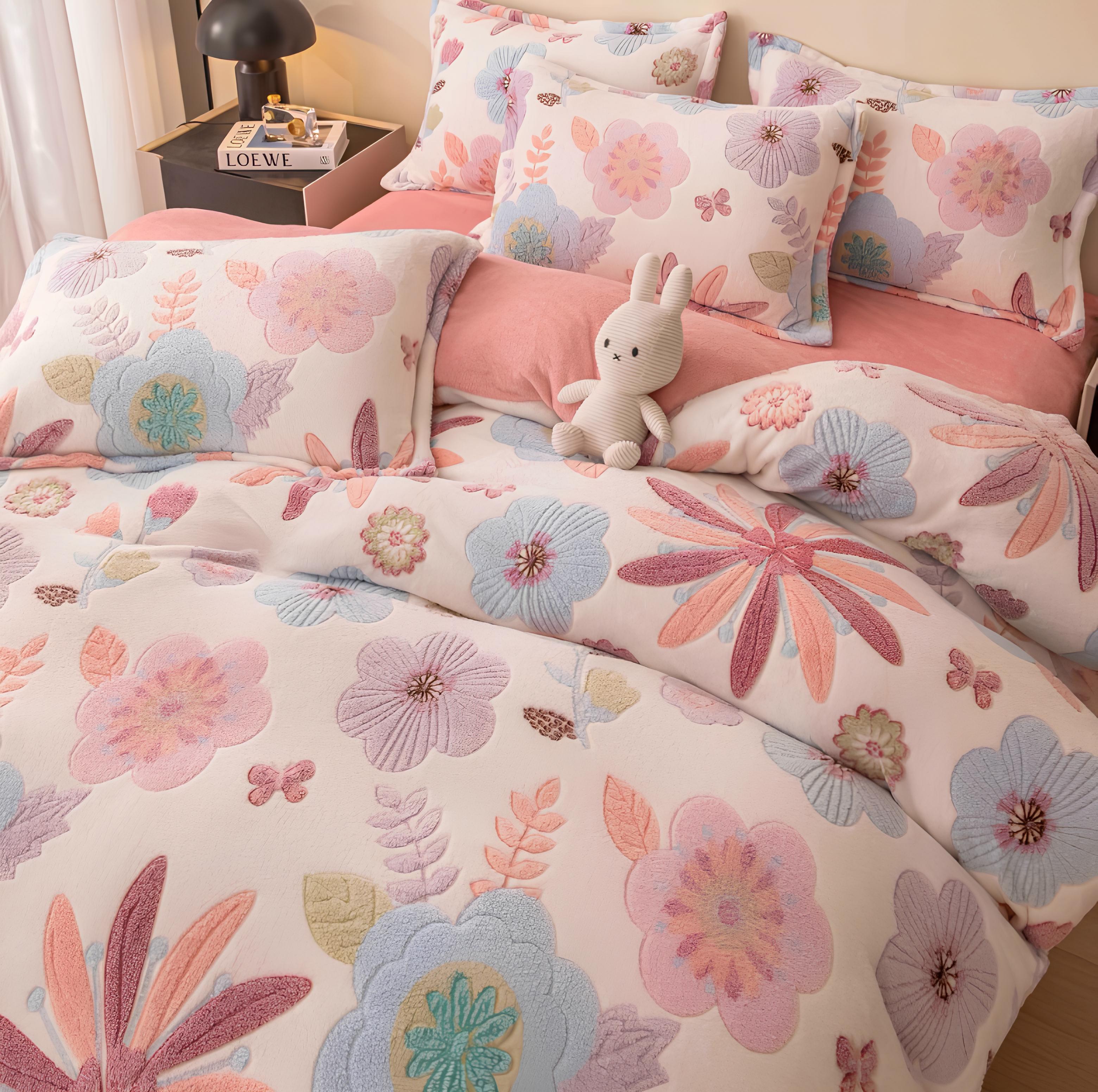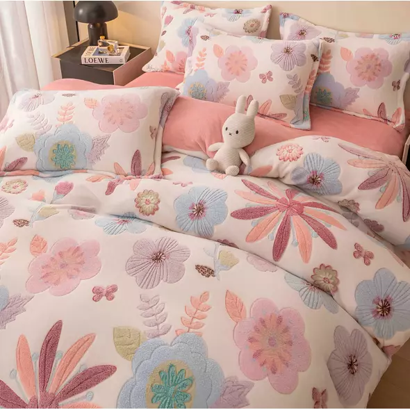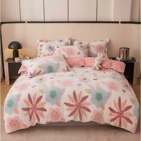 Lenjerie Cocolino 4 Piese Pentru Pat Dublu cu Elastic - JOJ646 Floare Roz
