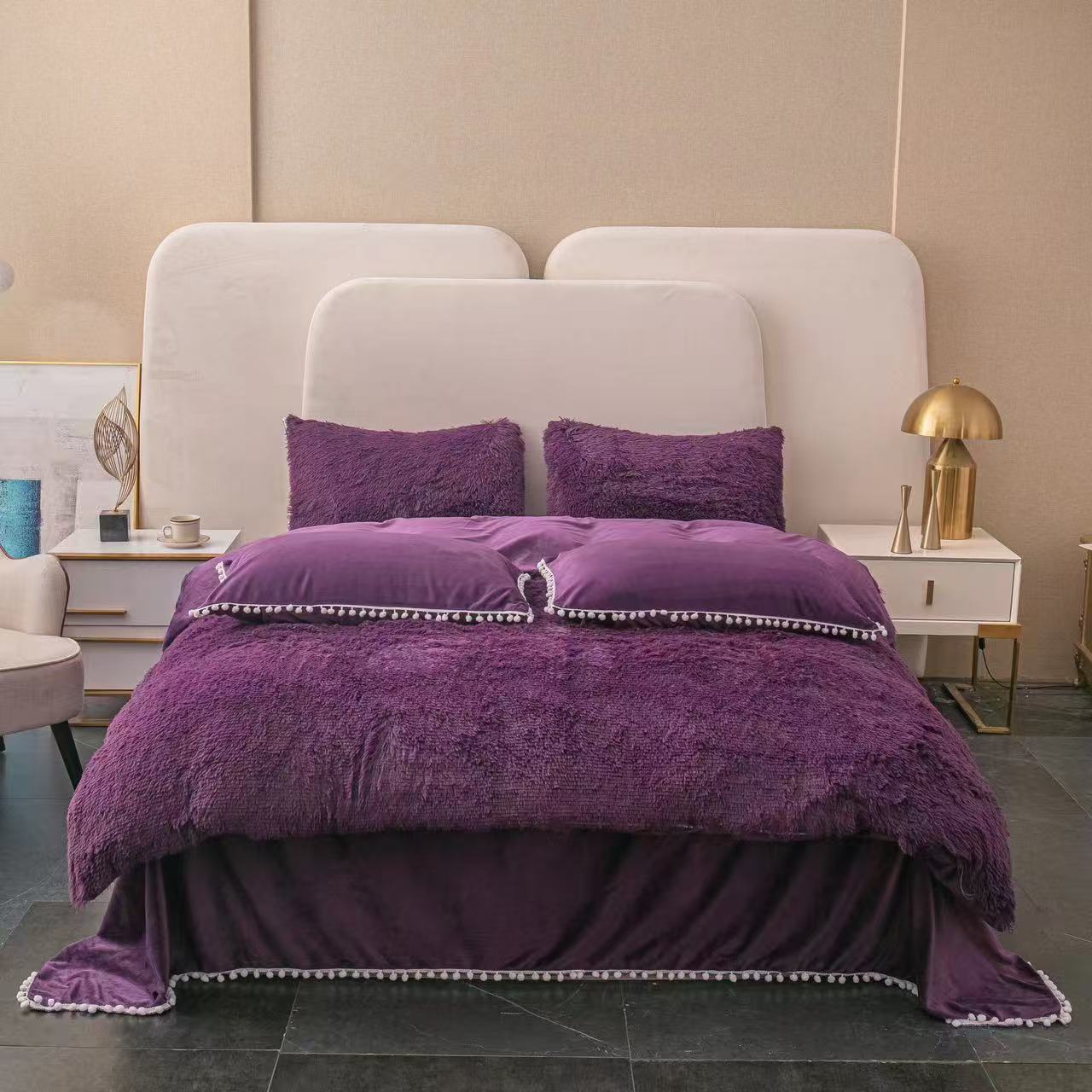 Produsul prezinta doua texturi de material cocolino, astfel incat, cearceaful de pat, partea inferioara a cearceafului de pilota si partea inferioara a fetelor de perna sunt din microfibra plusata fina; cearceaful de pilota pe fata principala si fetele de perna sunt din cocolino fluffy super pufos.