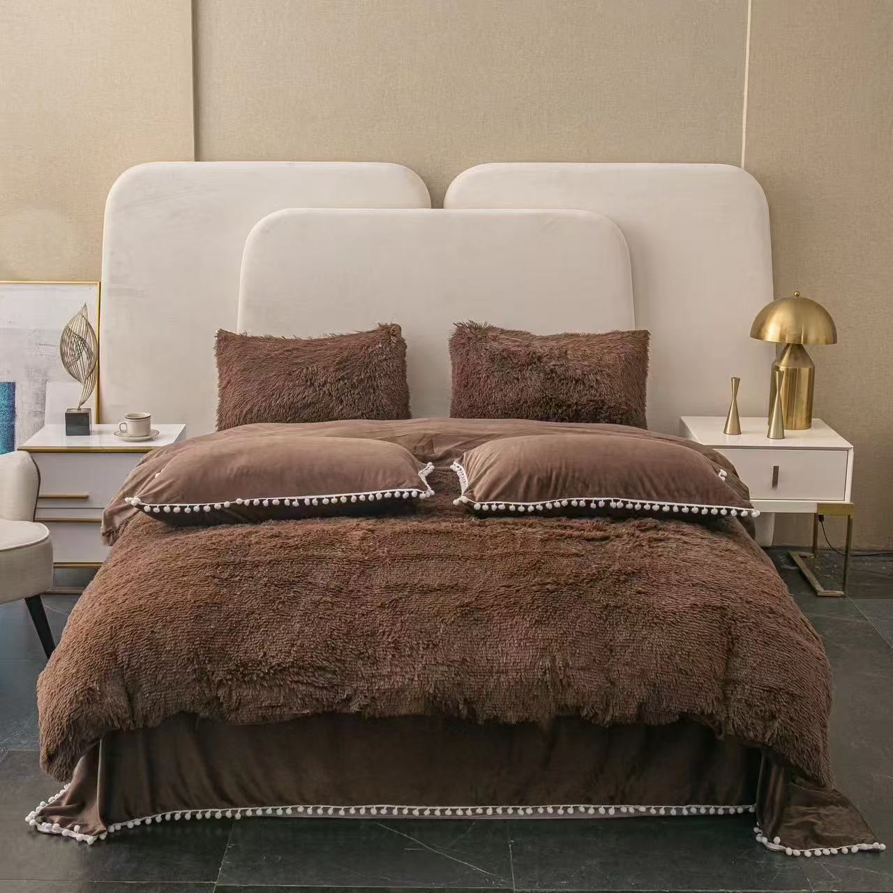 Produsul prezinta doua texturi de material cocolino, astfel incat, cearceaful de pat, partea inferioara a cearceafului de pilota si partea inferioara a fetelor de perna sunt din microfibra plusata fina; cearceaful de pilota pe fata principala si fetele de perna sunt din cocolino fluffy super pufos.