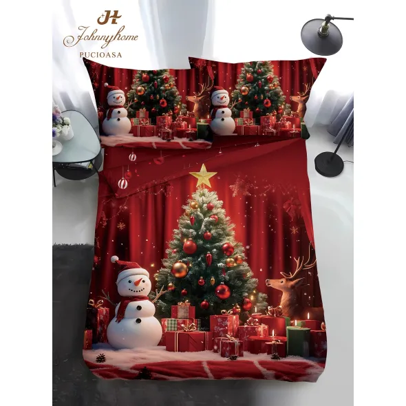 Lenjerie de pat 1 Persoana - Model de Craciun - SPR404016