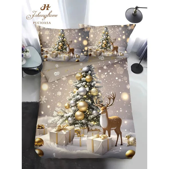 Lenjerie de pat 1 Persoana - Model de Craciun - SPR404034