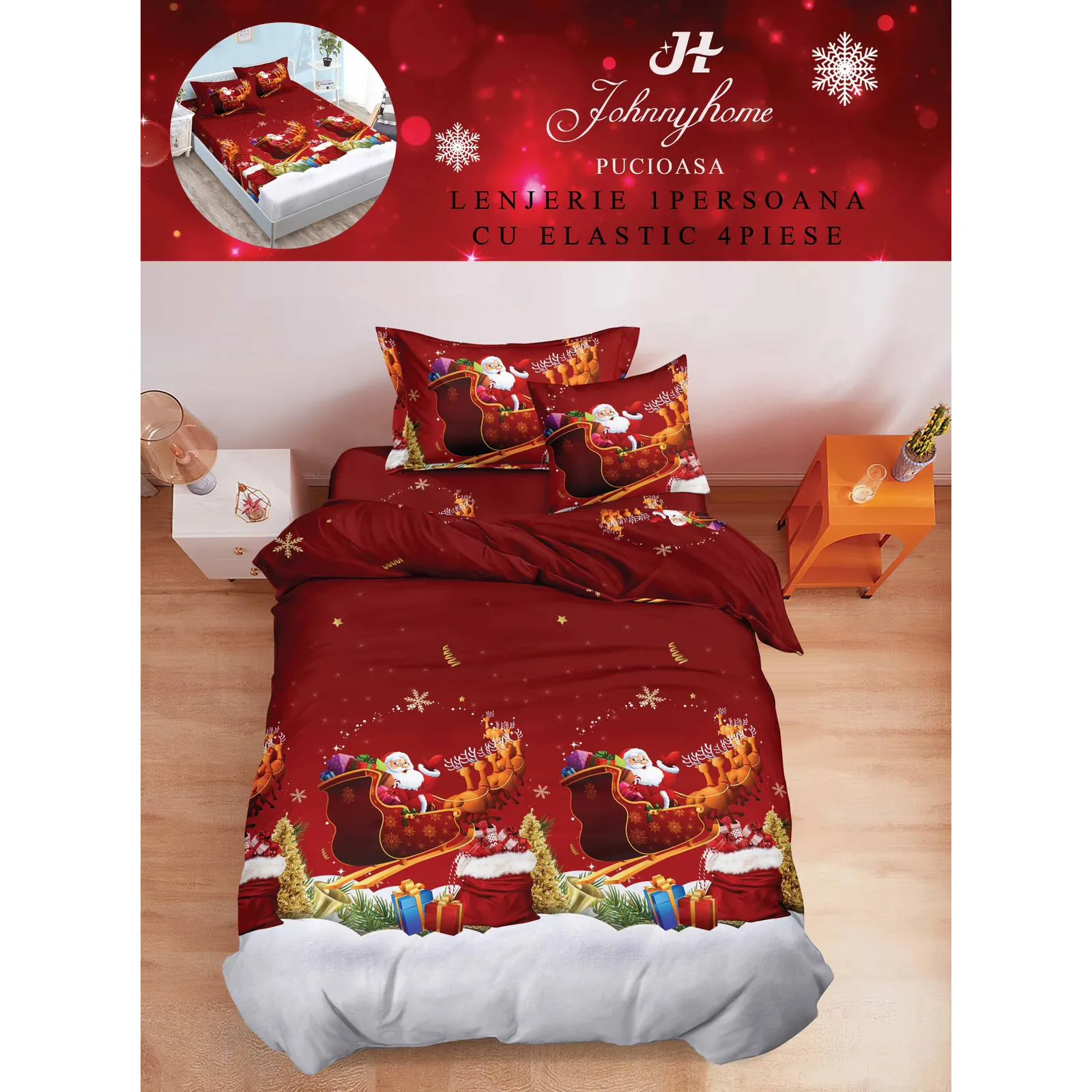Lenjerie de pat 1 Persoana - Model de Craciun - SPR404036