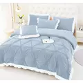 Lenjerie de Pat din Catifea, pentru Pat Dublu, 4 Piese, Gri Albastrui cu Margine Alba - FR140