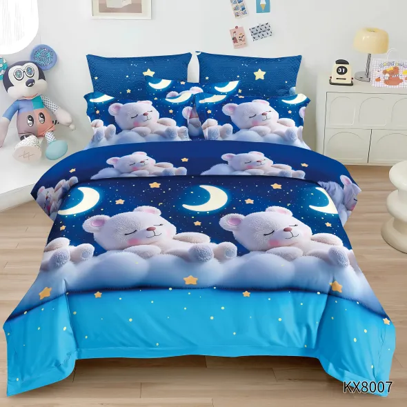 ATENTIE: Imprimeurile de pe fetele de perne pot fi oricare parte din imprimeul de pe cearsaful de pilota in functie de cum este taiat materialul in procesul de croiala.