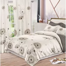 Lenjerie de Pat pentru 2 persoane cu 6 piese confectionata din Bumbac Finet + 2 draperii 150x230cm